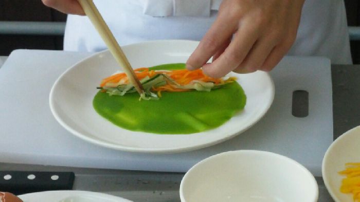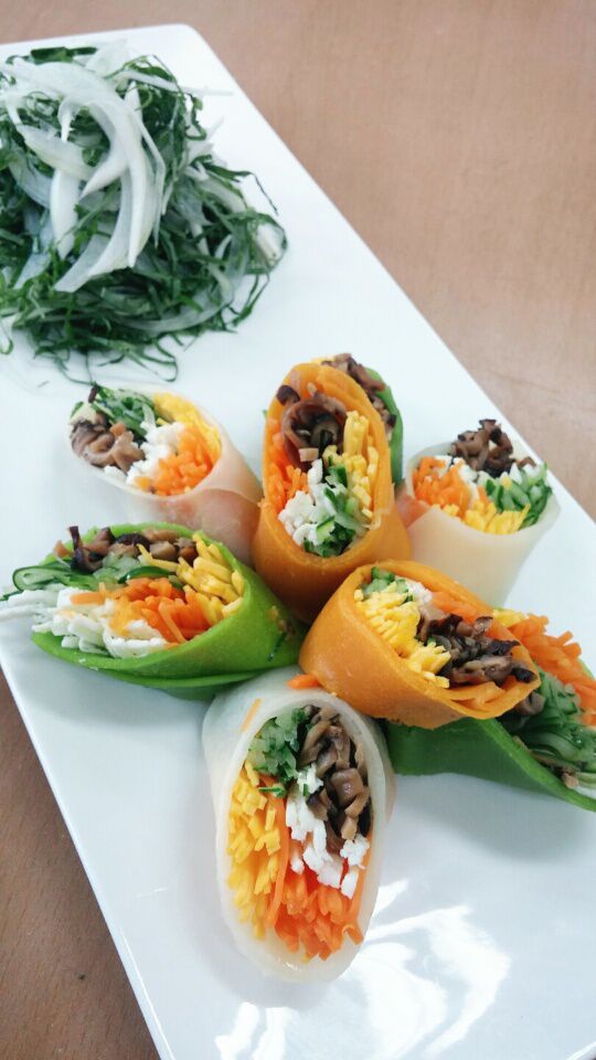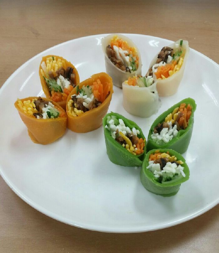 학생이 솜씨 있게 만든 삼색밀전병말이