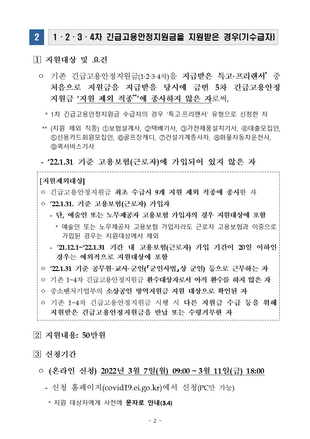 *자세한 사항은 전담 콜센터(1899-9595) 및 『긴급 고용안정지원금』 홈페이지(covid19.ei.go.kr)를 통해 확인하시기 바랍니다.