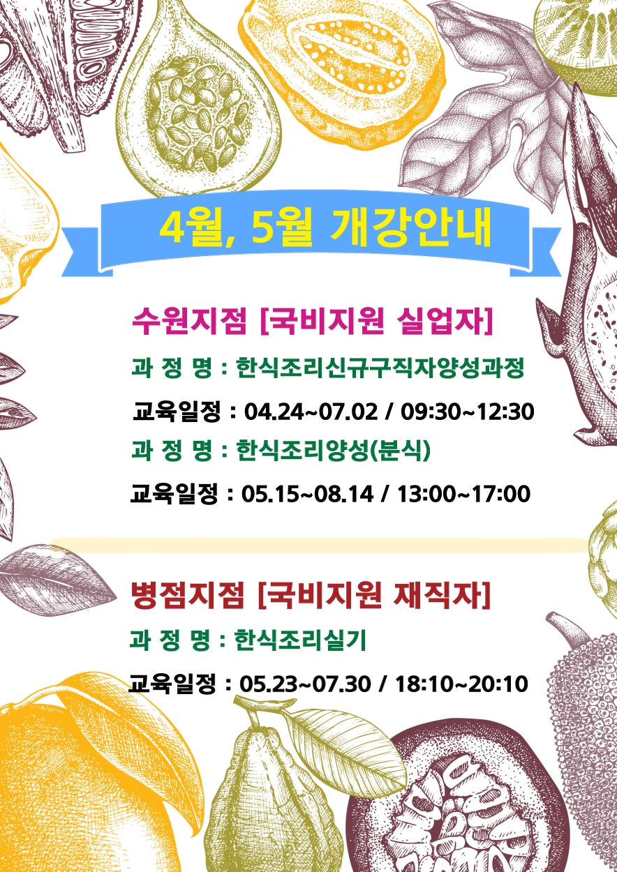 4월,5월 개강안내입니다.
