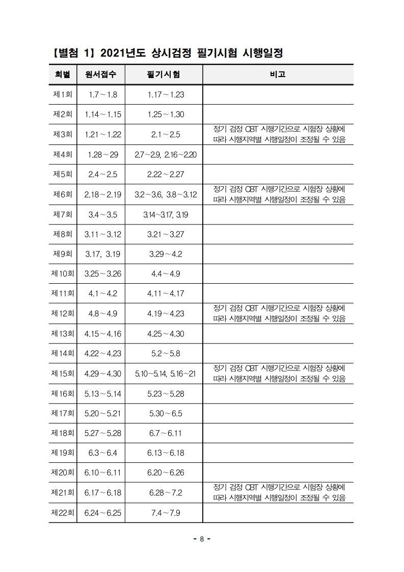 2021년도 국가기술자격 상시검정 시행일정입니다.