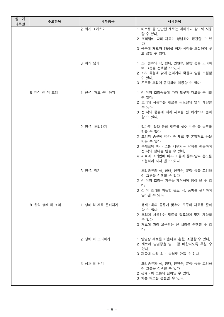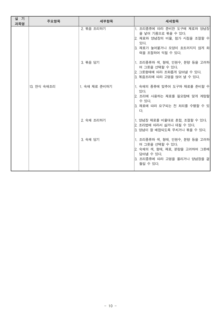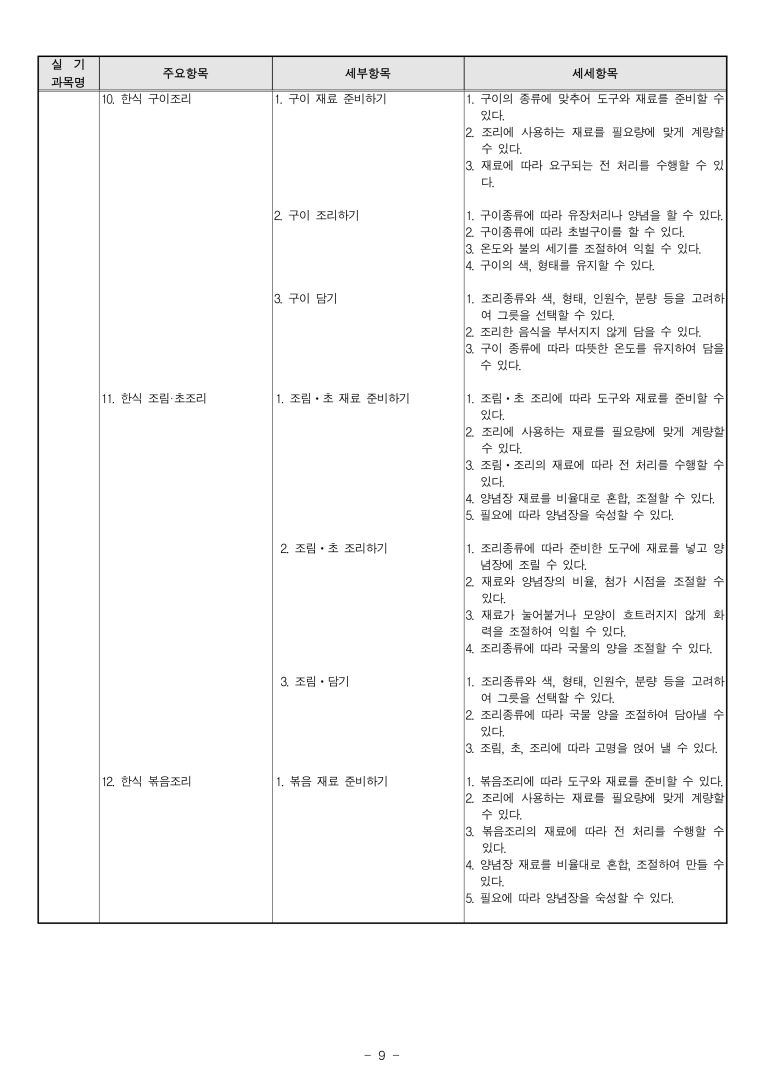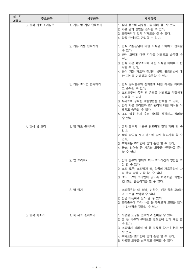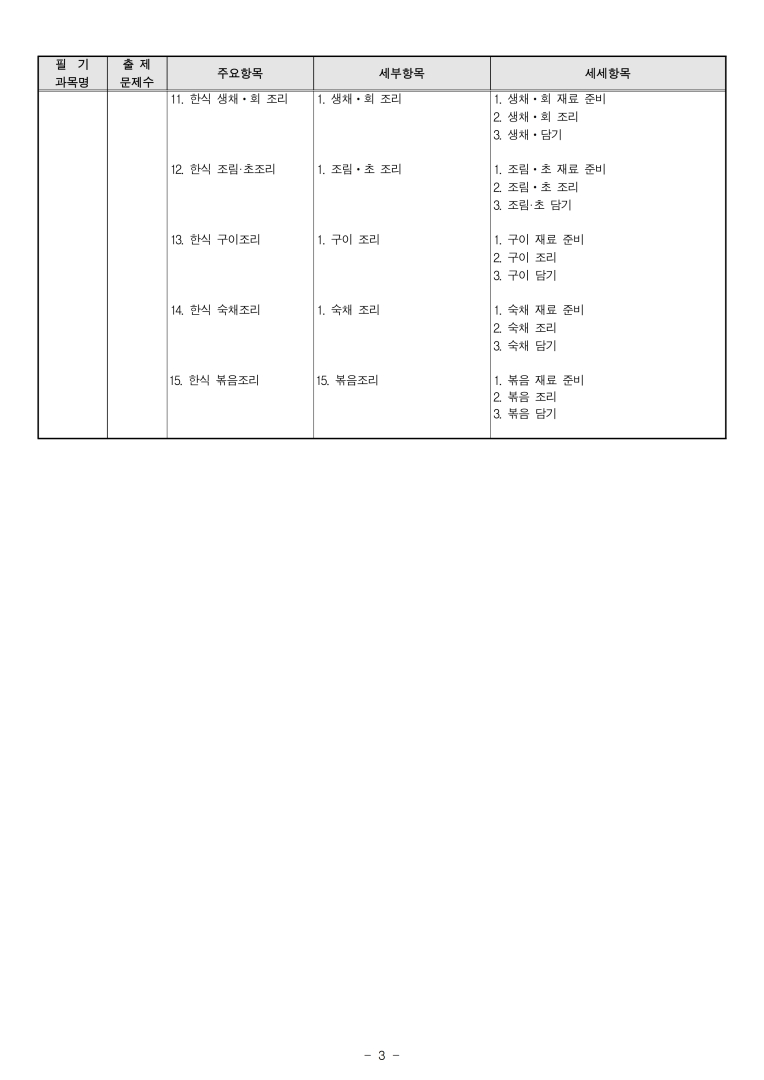 '20년~'22년 한식조리기능사 출제기준입니다. 모두의 합격을 기원합니다.