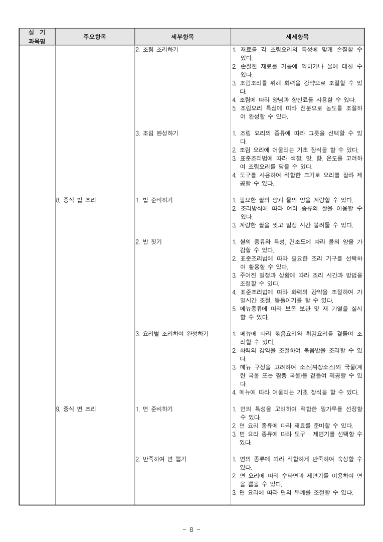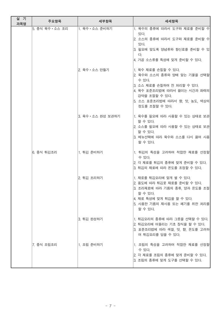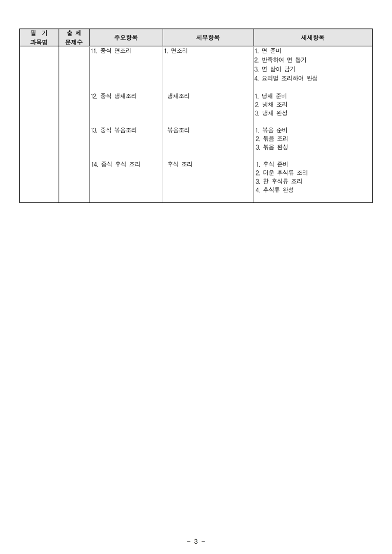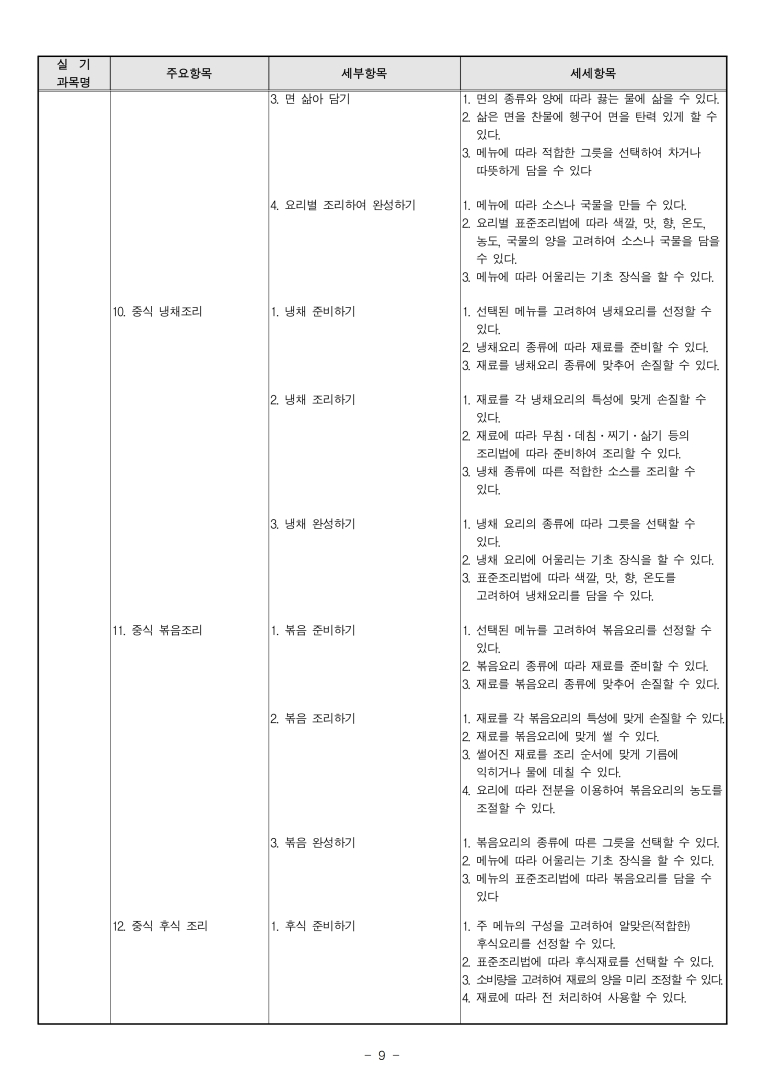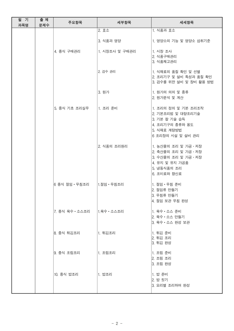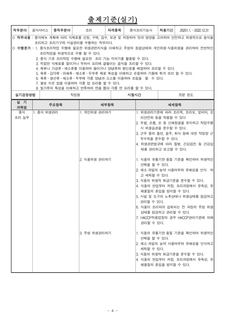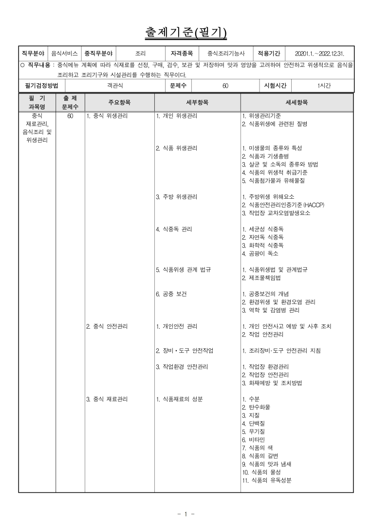 '20년~'22년 중식조리기능사 출제기준입니다. 모두의 합격을 기원합니다.