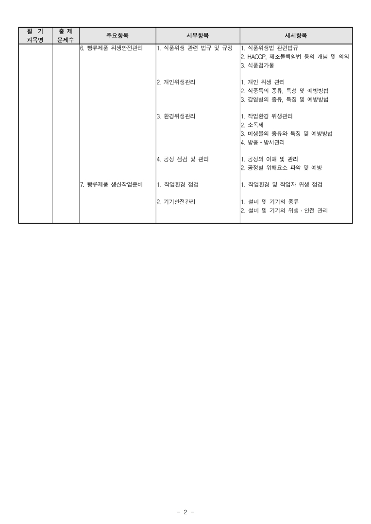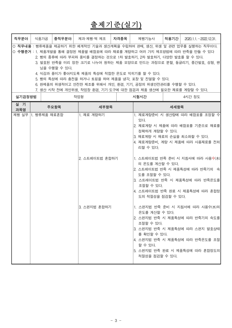 '20년~'22년 제빵기능사 출제기준입니다. 모두의 합격을 기원합니다.