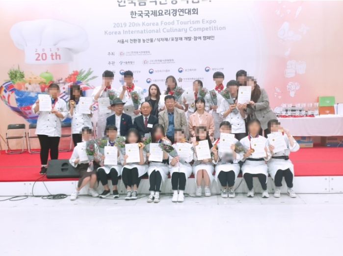 요리 경연대회에 출전한 위탁학생 전원이 수상하였습니다. 금상 17명 은상 1명 마지팬 케이크 부분과 조리 라이브에 참가하여