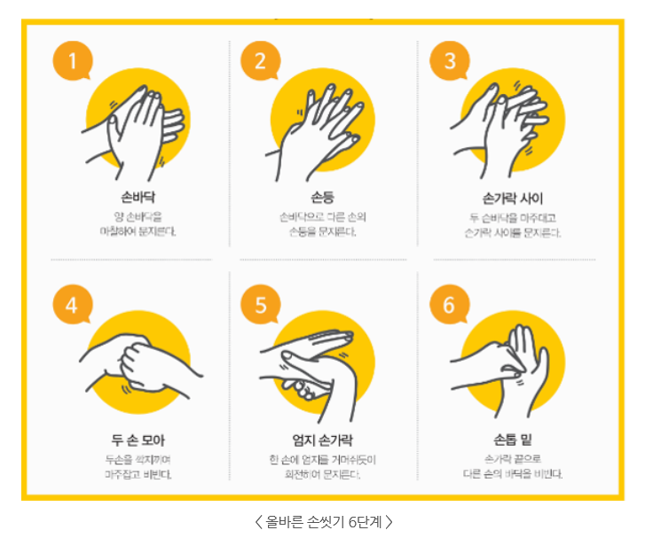 1) 물과 비누로 꼼꼼히 자주 손씻기
